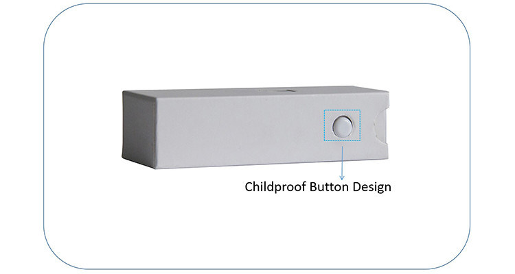 この子供の抵抗力がある紙箱は1mlおよび1/2mlカートリッジ、vapeのペンおよびオイルのスポイトに合う注文の泡の挿入物および安全なロック・ボタンと設計されている。それは米国16 CFR 1700.20にCRテスト承諾を渡した。